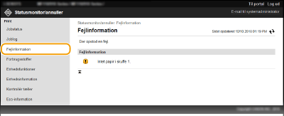 Når der opstår en fejl, vises denne side ved at klikke på den meddelelse, der vises under [Fejlinformation] på portalsiden (hovedsiden).