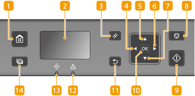 Tryk for at få vist Hjem-skærmen, der giver adgang til indstillingsmenuen og funktioner som kopiering og scanning.