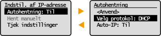og vende tilbage til den forrige skærm ved at trykke på tasten Tilbage.