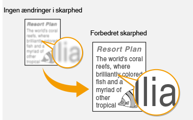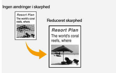 Du kan justere det kopierede billedes skarphed. Øg skarpheden for at gøre sløret tekst og slørede linjer mere skarpe, eller mindsk skarpheden for at forbedre udseendet af fotos fra et tidsskrift.