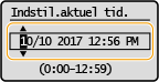 Angiv <Tidszone>, før du angiver den aktuelle dato og det aktuelle klokkeslæt. Hvis indstillingen <Tidszone> ændres, skifter den aktuelle dato og det aktuelle klokkeslæt tilsvarende.