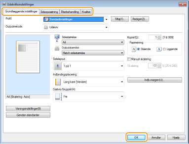 Angiv udskrivningsindstillingerne efter behov, og klik på [OK].