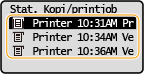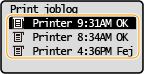 Vælg det dokument, hvis log du vil kontrollere.<OK> vises, når et dokument er blevet udskrevet, og <Fejl> vises, når et dokument ikke kunne udskrives, fordi det blev annulleret, eller der opstod en fejl.