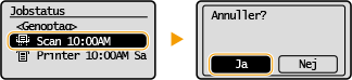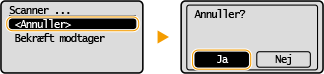 Hvis du vil annullere afsendelse af dokumenter, så snart scanningen startes, skal du vælge <Annuller> på skærmen eller trykke på
