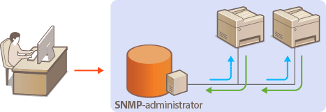 Med SNMP kan printeradministrationsoplysningerne, f.eks. udskrivningsprotokoller og printerporte, overvåges og hentes regelmæssigt fra en computer på netværket.
