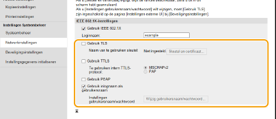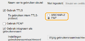 Schakel het selectievakje [Gebruik TTLS] of [Gebruik PEAP] in.