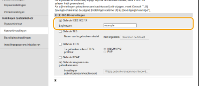 Schakel het selectievakje [Gebruik IEEE 802.1X] in, en typ de aanmeldingsnaam in het vak [Loginnaam].