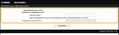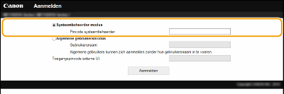Selecteer [Systeembeheerder-modus] of [Algemene gebruikersmodus].