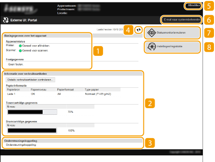 Hier ziet u de koppeling voor ondersteuning die is opgegeven bij [Apparaatinformatie] onder [Systeembeheer].