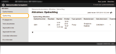 Als u in de systeembeheerdersmodus bent aangemeld, ziet u alle lopende afdruktaken en alle afdruktaken in de wachtlijst.
