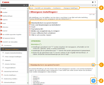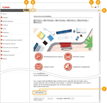 Klik hierop als u informatie wilt weergeven over hoe u de Gebruikershandleiding kunt bekijken, hoe u een zoekopdracht uitvoert en andere informatie.