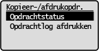 Hiermee kunt u de actuele kopieer-/afdrukstatus en de logboeken voor afgedrukte documenten weergeven.