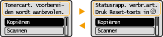 Berichten worden op het scherm weergegeven, bijvoorbeeld als het papier op is of de tonercartridges opraken. Maatregelen bij ieder bericht