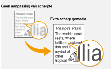 U kunt de scherpte van de gekopieerde afbeelding aanpassen. Stel de scherpte hoger in om onscherpe teksten en lijnen te verscherpen of stel deze lager in om de weergave van tijdschriftfoto's te verbeteren.