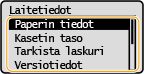 Näyttää kasettiin määritetyn paperikoon.