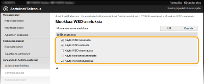 Valitse WSD-tulostuksen valintaruutu. Kun ei käytetä WSD-tulostusta, poista valintaruudun valinta. [Käytä WSD-selausta]