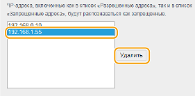 Выберите IP-адрес и нажмите [Удалить].