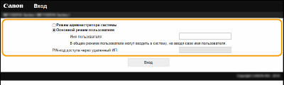Выберите [Режим администратора системы] или [Основной режим пользователя].
