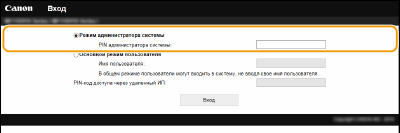 Введите соответствующий PIN-код в [PIN администратора системы], чтобы войти в систему в режиме администратора системы.