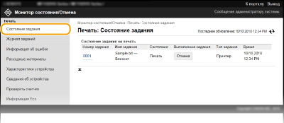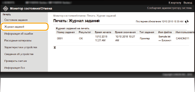 Нажмите [Номер задания] для документов, обработка которых приостановлена, чтобы отобразилась подробная информация. Можно просмотреть имя пользователя и количество страниц печатаемого документа.
