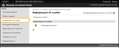 При появлении ошибки щелкните сообщение, показанное в [Информация об ошибке] на странице портала (главная страница), — отобразится эта страница.