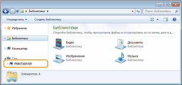 Выберите сервер печати в разделе [Сеть] или [Сетевое окружение].