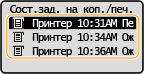 Выберите документ, журнал которого необходимо проверить.<OK> отображается, если документ удалось отправить; <Ошибка> отображается, если не удалось напечатать документ из-за отмены печати или возникновения какой-либо ошибки.