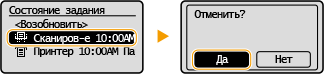 Оригиналы отсканированы и ожидают обработки. Выберите документ, подлежащий отмене, и выберите <Да>.