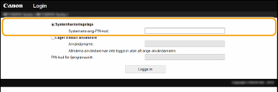 Ange rätt PIN-kod i [Systemansvarig-PIN-kod] för att logga in i systemhanteringsläge.