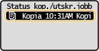 Välj det dokument vars status du vill kontrollera på skärmen <Status kop./utskr.jobb> och tryck på