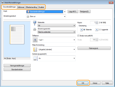 Ange de utskriftsinställningar som behövs och klicka på [OK].