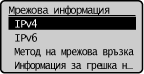 Показва мрежовите настройки, като напр. IP адреса на устройството, и състоянието, като напр. условията за безжична LAN комуникация.