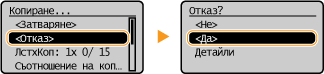 на работния панел. Можете също така да отмените копирането след проверка на състоянието на копиране.