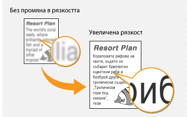 Можете да регулирате рязкостта на копираното изображение. Увеличете рязкостта, за да направите текста и линиите по-резки, или намалете рязкостта, за да подобрите изгледа на снимки от списание.