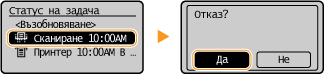 Оригинали са били сканирани и чакат да бъдат обработени. Изберете документа, който искате да отмените, след което изберете <Да>.