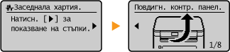 , за да видите лесни решения на вашия проблем. Ако ви е трудно да разберете описаните на дисплея процедури, вижте в следващите раздели как да отстраните заседналата хартия.