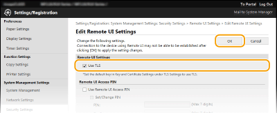 Inici de Remote UI (IU remot) amb TLSSi intenteu iniciar Remote UI (IU remot) amb TLS activat, pot ser que aparegui una alerta de seguretat referent al certificat de seguretat. En aquest cas, comproveu que s'hagi introduït l'URL correcta al camp de l'adreça i continueu per visualitzar la pantalla de Remote UI (IU remot). Inici de Remote UI (IU remot)