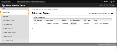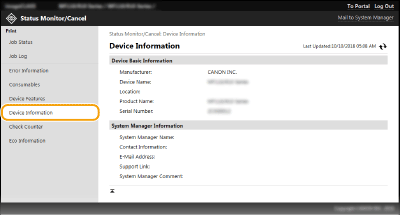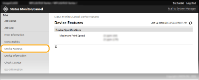 Es mostra la mida i el tipus de paper per a l'origen del paper, el número de model del cartutx de tòner, etc. També podeu fer clic a [Check Consumables Details] a la pàgina del Portal (pàgina principal) perquè es mostri aquesta pàgina (