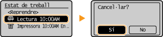 Els originals s'han llegit i estan en espera que es processin. Seleccioneu primer el document que vulgueu cancel·lar i, a continuació, <Sí>.