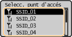 Podeu cercar els encaminadors sense fil (o punts d'accés disponibles) disponibles per a la connexió i seleccionar-ne un des de la pantalla de l'equip. Per a la clau de xarxa, introduïu una clau WEP o PSK. Abans de seleccionar un encaminador sense fil, comproveu i anoteu la informació de configuració necessària, incloent-hi l'SSID i la clau de xarxa (