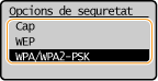 Quan es connecta a una xarxa LAN sense fil, l'equip produeix un error d'autenticació si l'autenticació de clau compartida s'estableix a l'encaminador sense fil. Si això passa, l'equip canvia automàticament l'opció a <Clau compartida> i recupera la connexió.