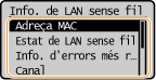 Es pot imprimir una llista de les opcions de xarxa actuals. Llista de dades d'usuari