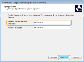 És un port estàndard del Windows. Quan feu servir aquest tipus de port, heu d'afegir un port nou cada vegada que es canviï l'adreça IP de l'equip. Seleccioneu aquest tipus de port quan utilitzeu l'equip en un entorn IPv6 i quan no pugueu afegir un port MFNP.