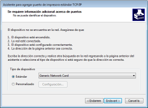![]() *Quan seleccioneu el [Tipus de dispositiu], seleccioneu [Dispositiu d'impressió en xarxa Canon amb P9100] a [Estàndard].