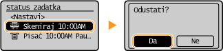 Originali su skenirani i čekaju obradu. Odaberite dokument koji želite otkazati, a zatim <Da>.