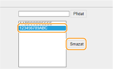 Zadejte adresu MAC do textového pole [Adresa k uložení] a klikněte na možnost [Přidat]. Povoluje komunikaci (příjem) pouze se zařízeními, jejichž MAC adresy jsou uložené. Komunikace se zařízeními s jinými MAC adresami je omezená.