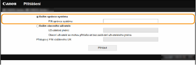 Zadejte příslušný kód PIN do možnosti [PIN správce systému] a přihlaste se do režimu správce systému.