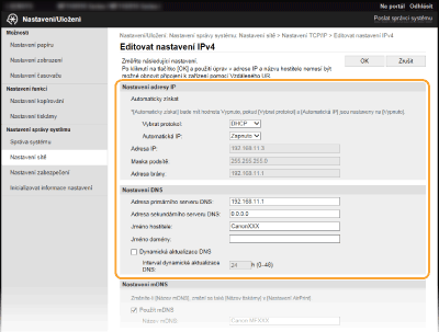 Prostřednictvím Vzdáleného uživatelského rozhraní můžete změnit různá nastavení zařízení. Většinu nastavení je možné zadat i prostřednictvím zařízení, existuje však několik nastavení, která lze zadat pouze prostřednictvím Vzdáleného uživatelského rozhraní. V této části je popsán základní postup, jak změnit nastavení zařízení pomocí Vzdáleného uživatelského rozhraní.