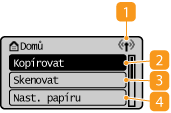 <Nabídka>Tato položka umožňuje přístup k nastavením stroje, jako jsou <Nastavení sítě>, <Možnosti> a k řadě dalších. Nastavení seznamu nabídky