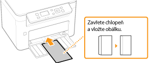 Obálky vložte tak, aby okraj s chlopní směřoval k levé straně zásuvky, jak ukazuje obrázek.